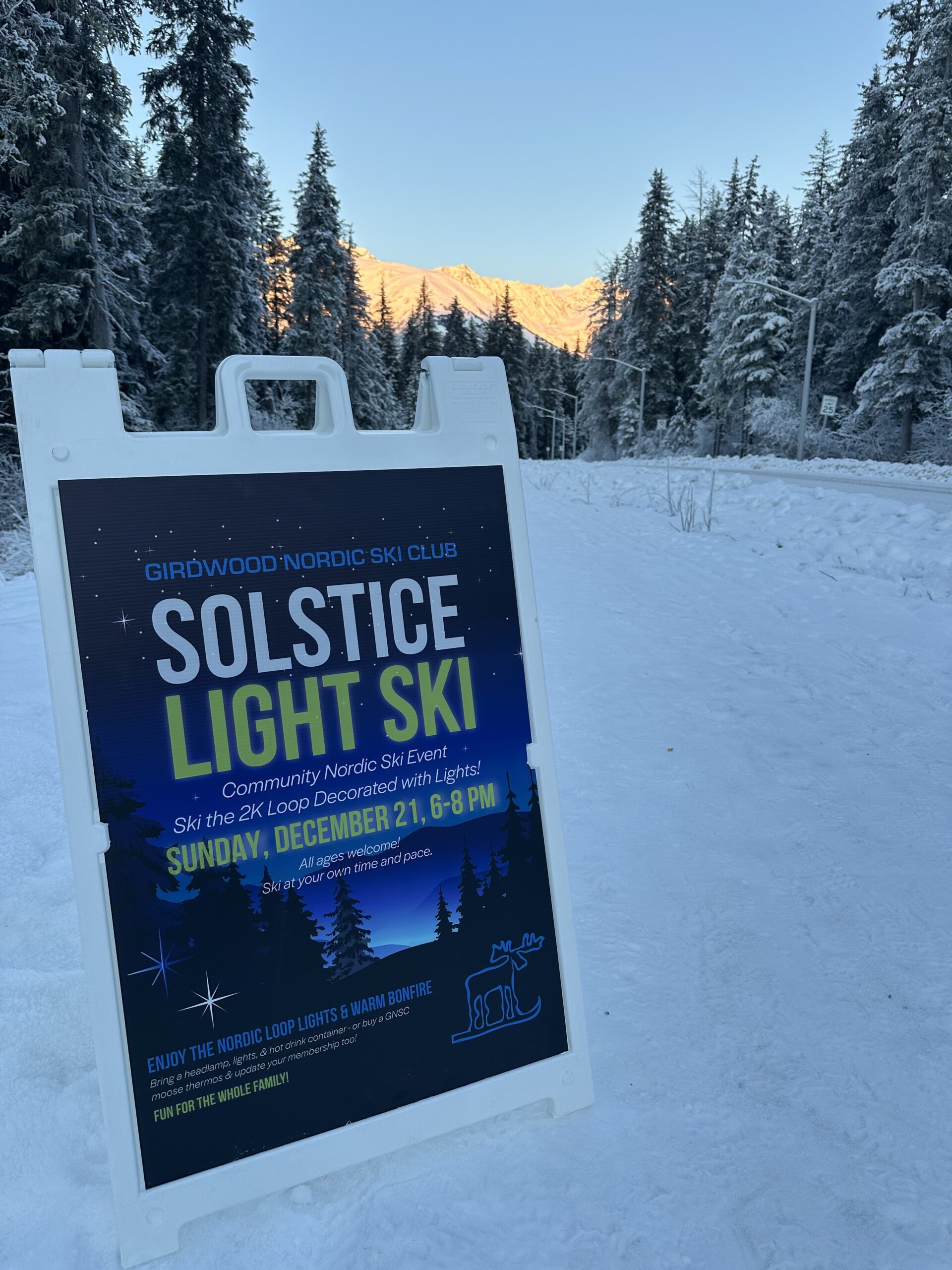 Winter Solstice is here! Burrr. Join Girdwood community at the 5K kiosk from 6pm until bundling outdoors is no more fun. The 2K loop will be open to skis, snowbikes, walkers and bundled humans to take in the light! Wear your layers and lights. See you soon! Bring your own mug to warm up with cocoa and soup!...