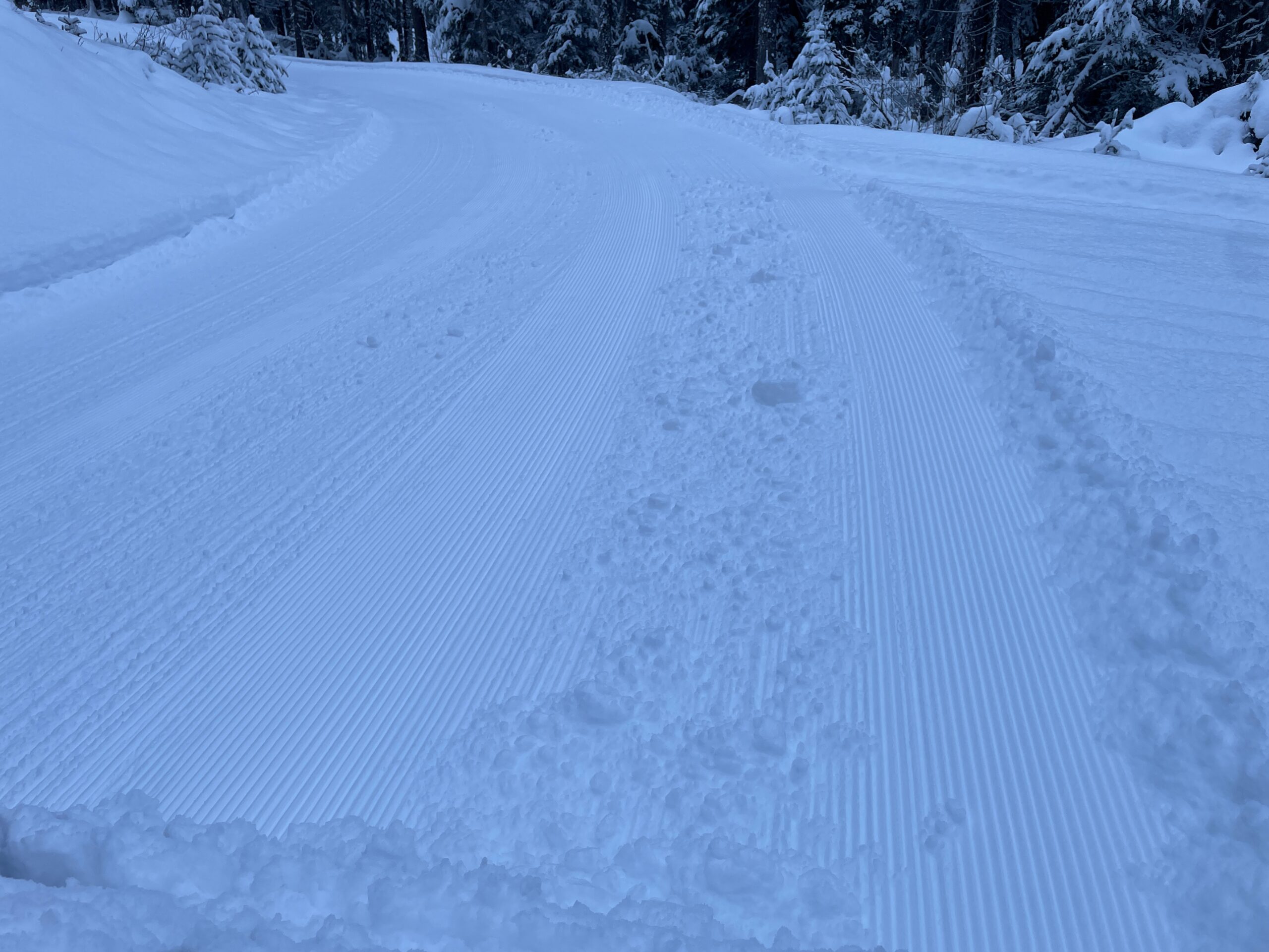 Groomers went out this morning! Lots of new snow. 5K is soft corduroy and meadows are next. Tracks set likely tomorrow. Thank you for supporting GNSC!