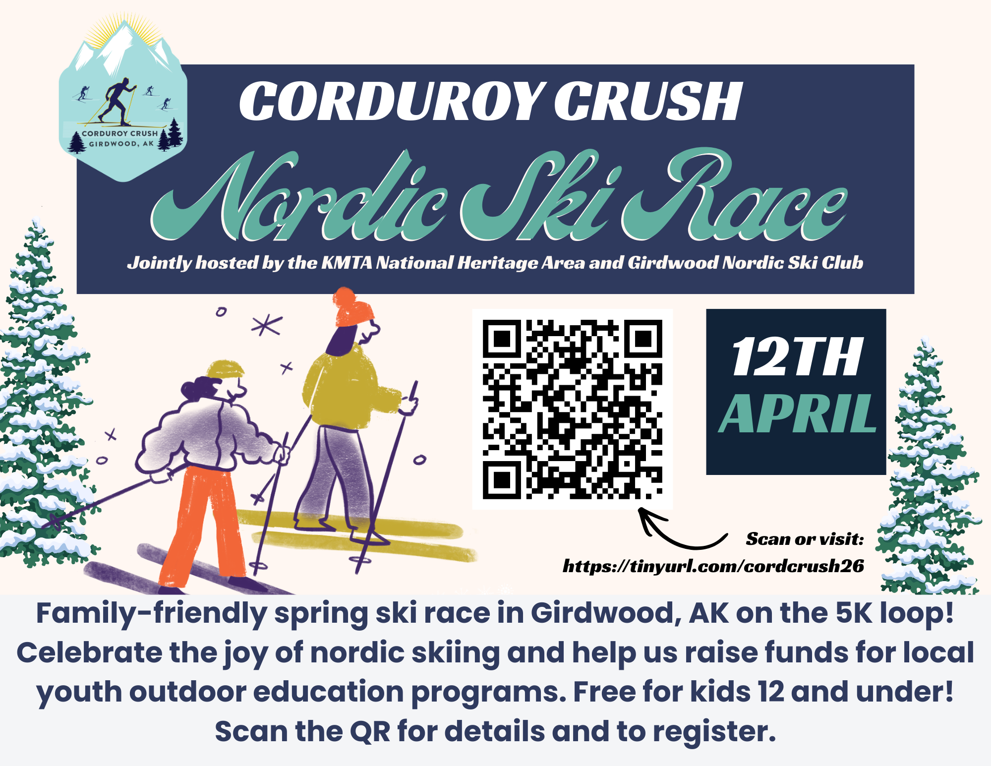 Join us for the Corduroy Crush in April with KMTA! Kenai Mountains Turnagain Arm National Heritage Area is teaming up with GNSC for the 4th Annual fun, family-friendly spring skiing celebration. Get a relay team together and crush the corduroy. Would you like to volunteer? Join the fun on Sunday April 12 Register HERE. We look forward to seeing you in Girdwood!...